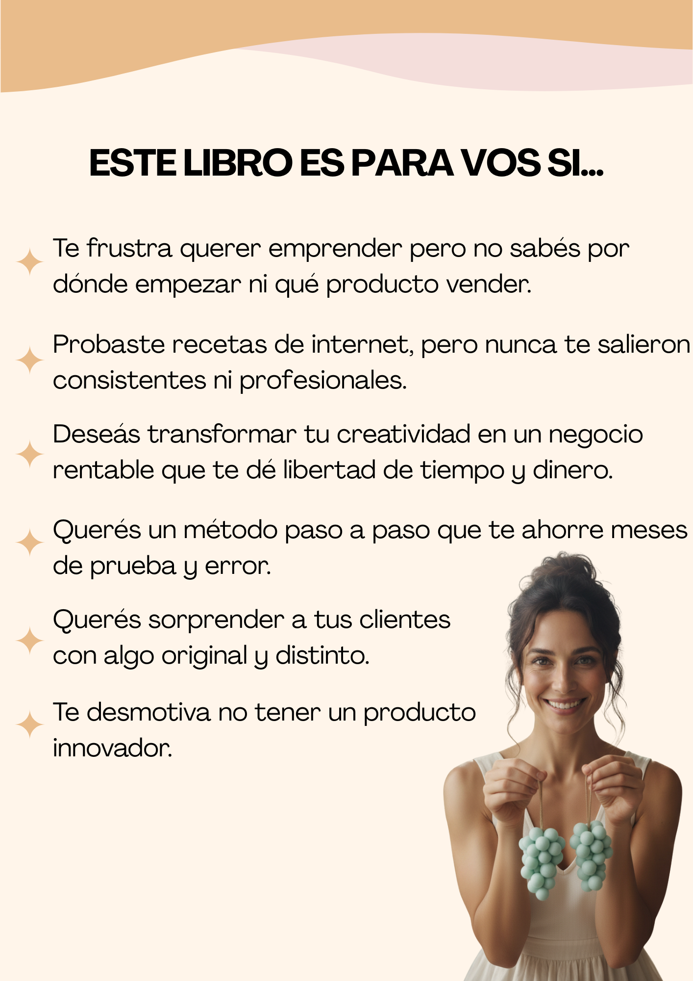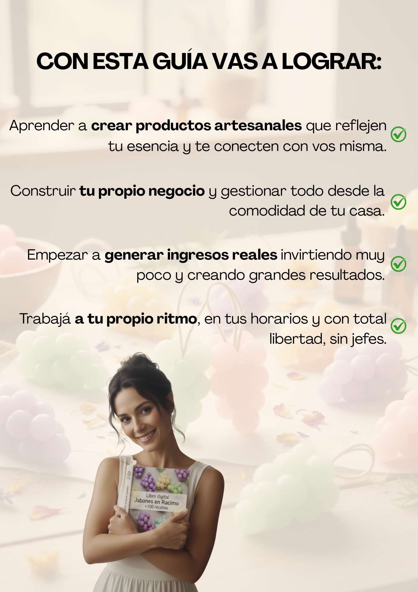 “Ya tenía experiencia haciendo jabones, pero este ebook me abrió la cabeza con ideas innovadoras. Los de racimo se venden rapidísimo.”