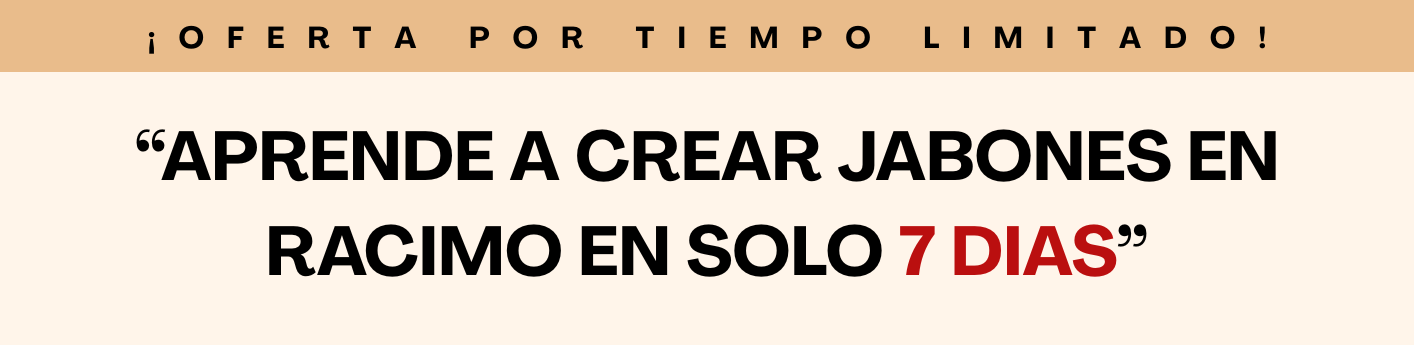 Este es el único enfocado en la técnica de jabones artesanales en racimo, con recetas exclusivas, técnicas innovadoras y bonos que potencian tu emprendimiento.